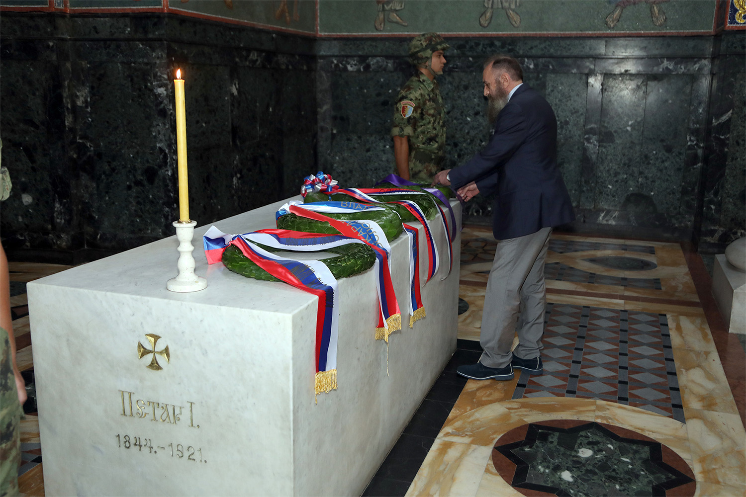 The 102nd anniversary of the death of one of the most loved rulers of Serbia, HM King Peter I, was marked today in the Mausoleum of the Royal Family, Saint George’s Church in Oplenac. Mr. Predrag Markovic, a member of the Crown Council, attended the State ceremony as the representative of HRH Crown Prince Alexander.