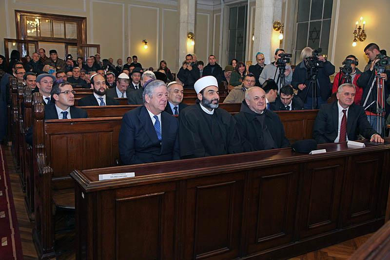 На церемонији, коју је водио г-дин Исак Асиел, велики рабин Србије, били су присутни и Њ.Е. г-дин Томислав Николић, председник Србије, Муфтија Србијански и Имам београдски, Мухамед еф. Јусуфспахић, Генерални викар Надбискупије Патер Леополд Рохмес, Њ.Е. г-дин Јосеф Леви, амбасадор Израела, Њ.Е. г-дин Лоран Стоквис, амбасадор Холандије, Њ.Е. г-дин Мајкл Давенпорт, амбасадор Уједињеног Краљевства, Њ.Е. г-ђа Мерцедес Руиз Запата, амбасадор Мексика, Њ.Е. г-дин Армандо Варикио, амбасадор Италије и Њ.Е. г-дин Мехмет Кемал Бозај, амбасадор Турске, представници културног и јавног живота Србије и велики број грађана.