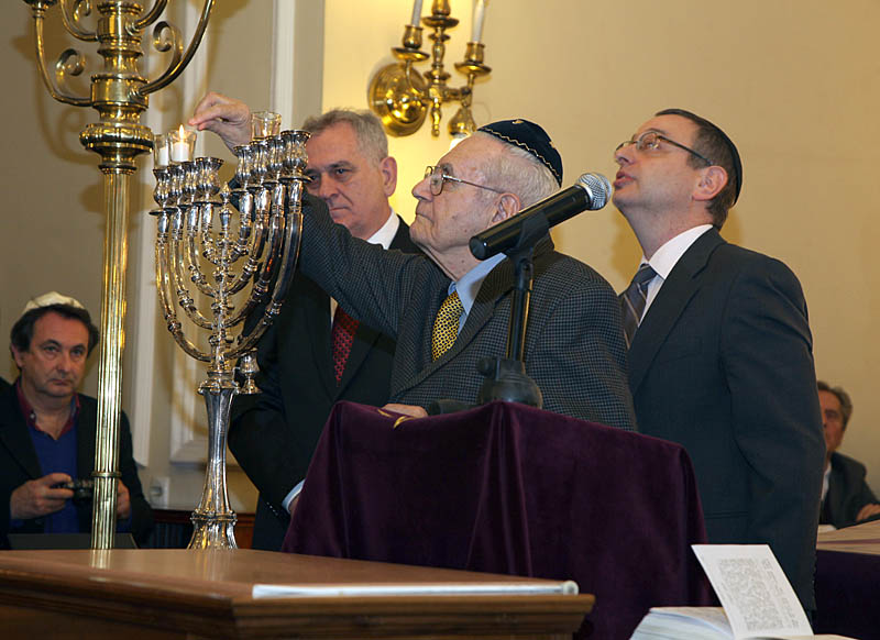 Његово Краљевско Височанство Престолонаследник Александар присуствовао је вечерас церемонији паљења Ханука свећа у београдској Синагоги.