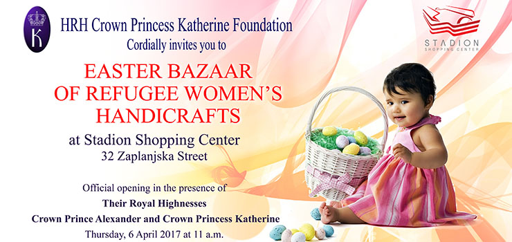 Фондација Њ.К.В. Принцезе Катарине дуги низ година организује хуманитарни васкршњи базар са жељом да помогне расељеним, избеглим и социјално угроженим лицима. У овогодишњем базару учествоваће више од 40 жена из свих крајева Србије, као и три дома за децу са посебним потребама, а сав приход од продаје намењен је за помоћ овим угроженим групама.