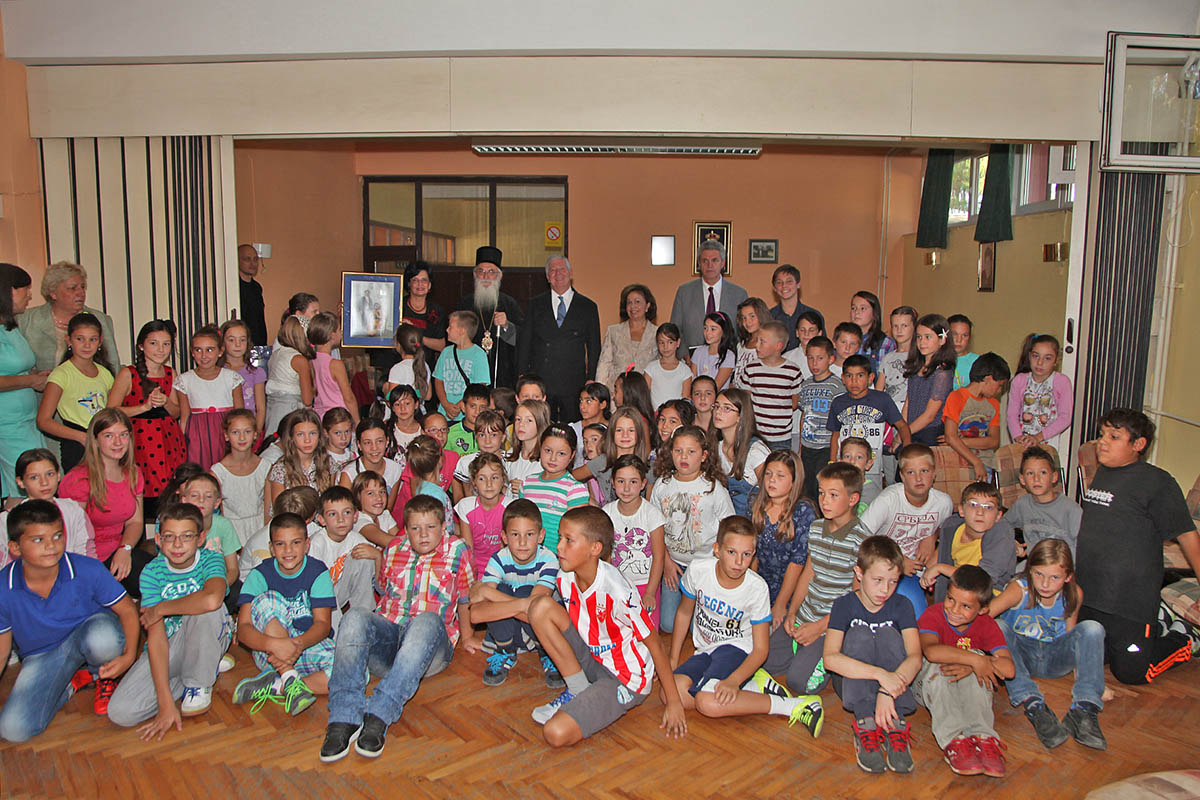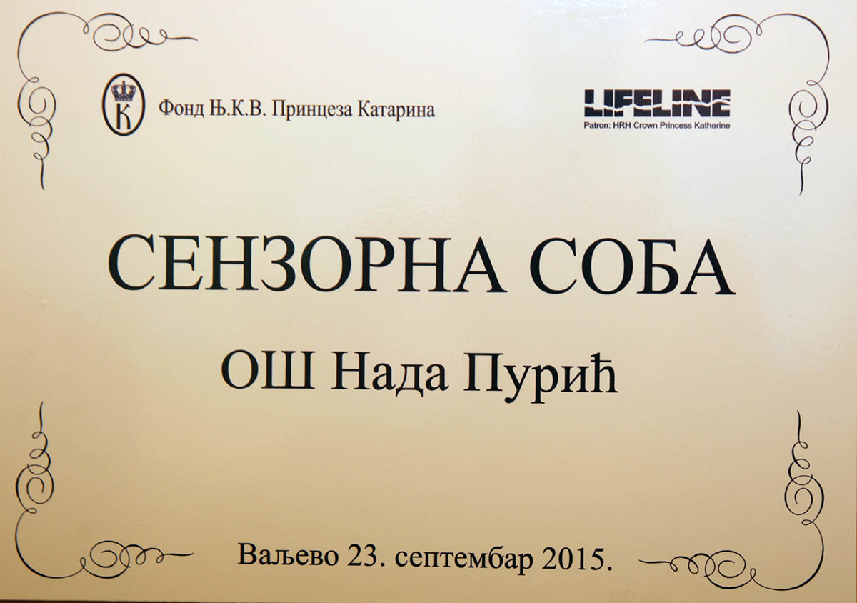 Oni su zajedno prisustvovali kulturno umetničkom programu koji su učenici priredili za njih, a po završetku programa Prestolonaslednik i Princeza su i zvanično otvorili senzornu sobu vrednu 1.200.000 dinara koju je školi darovala Fondacija Princeze Katarine i Lajflajn humanitarna organizacija koja je pod pokroviteljstvom Njenog Kraljevskog Visočanstva. Prestolonaslednik je u ime svoje Fondacije za obrazovanje školi poklonio komplet knjiga i podsetio đake da je važno da budu vredni i posvećeni školi, i da se trude da čitaju što više knjiga kako bi kada porastu bili spremni da svoja znanja primenjuju za dobrobit svoje zemlje i svog naroda.