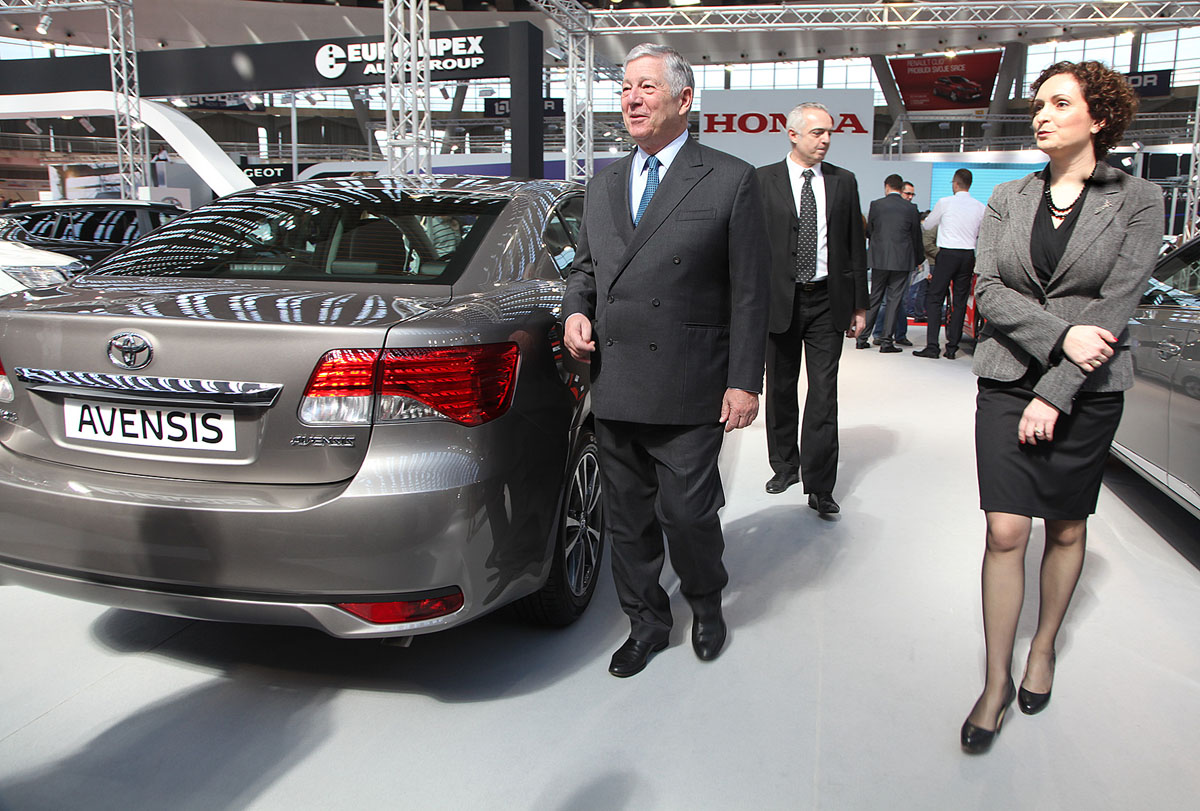 Prestolonaslednik Aleksandar obišao je štandove Fijata, Mercedesa i Tojote u pratnji zamenice generalnog direktora Beogradskog sajma g-đe Marije Labović.
