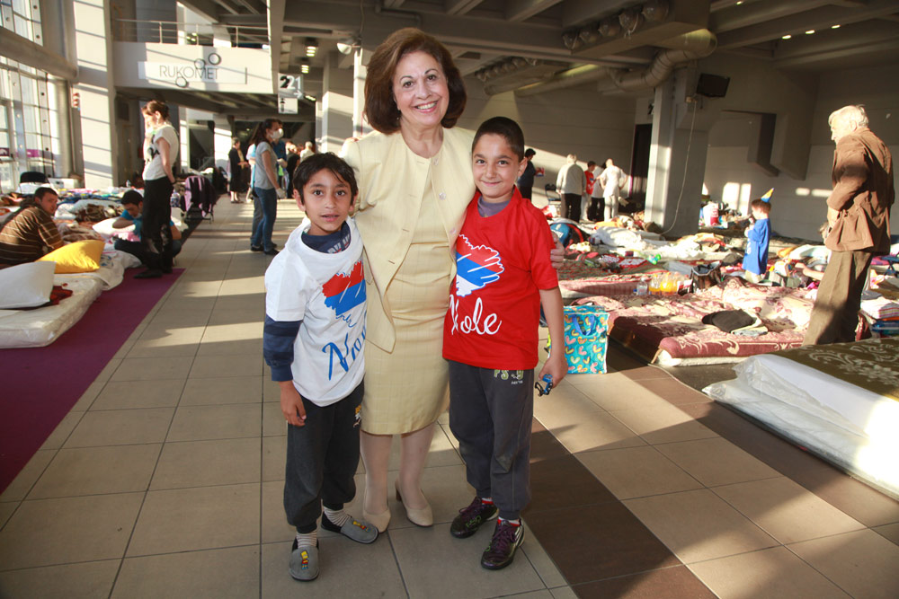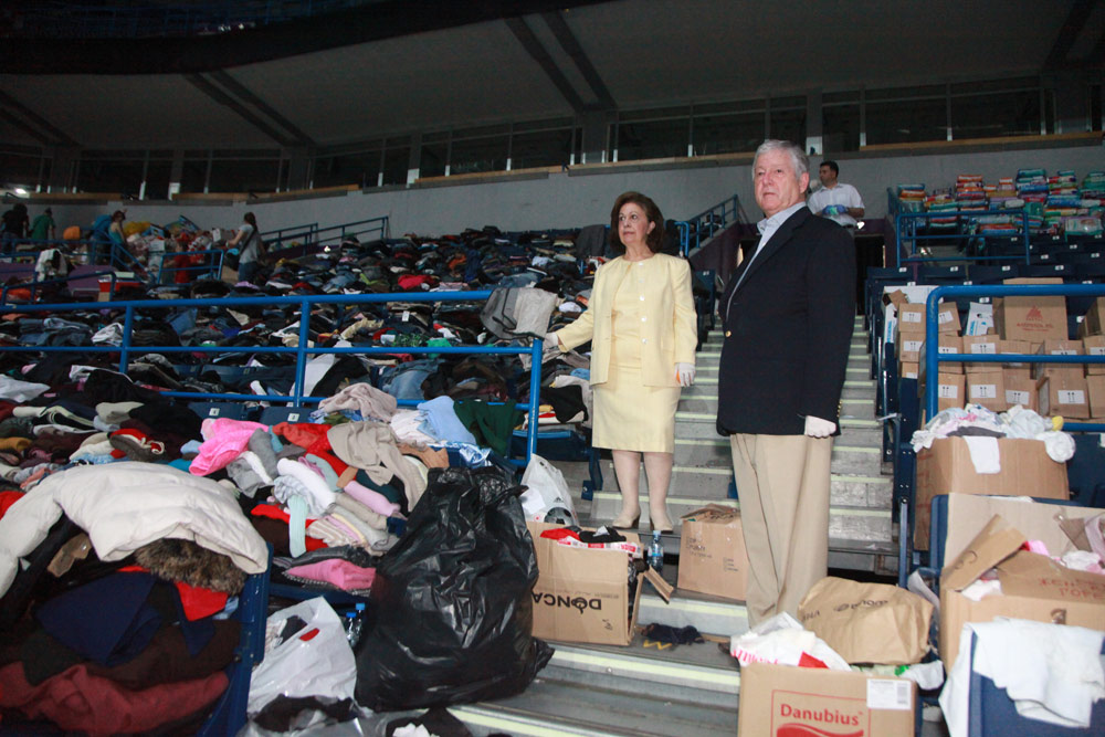 Njihova Kraljevska Visočanstva porazgovarala su sa žrtvama poplava iz Obrenovca, uglavnom starijim ljudima i decom, i ohrabrili ih i poručili da budu strpljivi i da ne gube nadu u skori povratak kući. U Areni su sreli i g-dina Srđana Đokovića, oca Novaka Đokovića i predstavnika njegove humanitarne fondacije, koji je takođe doneo pomoć žrtvama poplava.