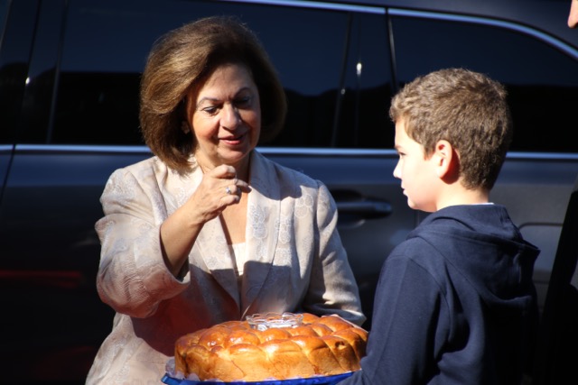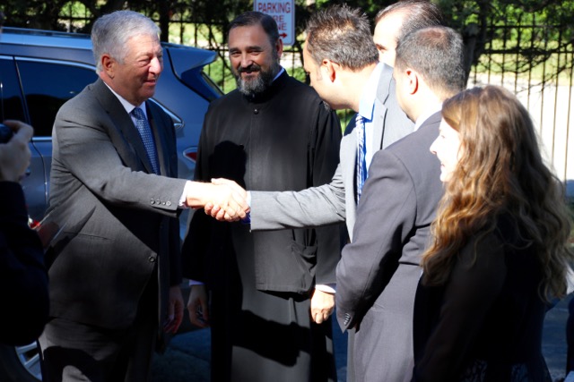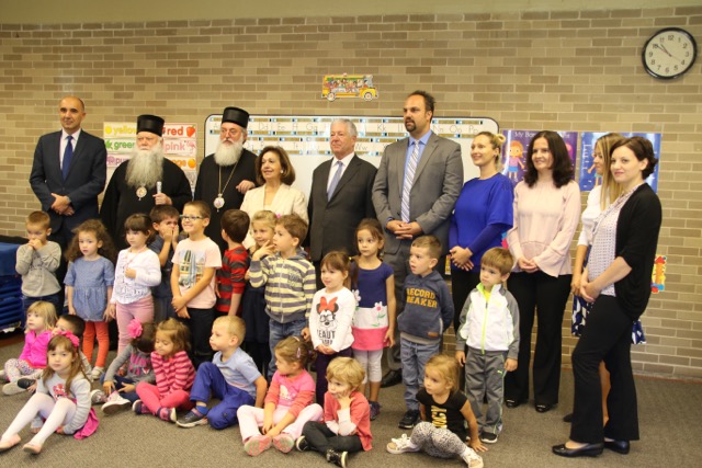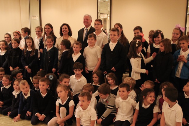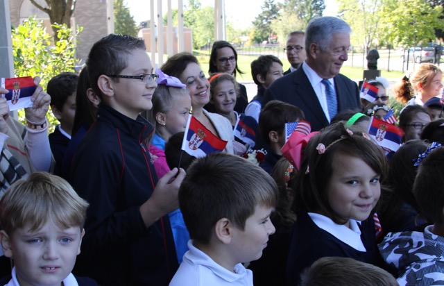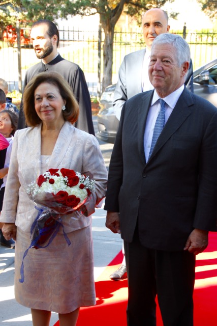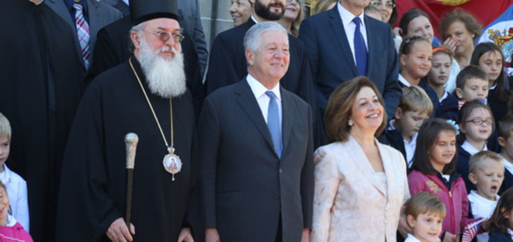Kraljevski par su dočekali Njegova Preosveštenstvo Vladika Longin i Dejan Radulović, vršilac dužnosti glavnog konzula Republike Srbije. Ispred hrama je priređen svečani doček, nakon čega su Njihova Kraljevska Visočanstva obišla učionice i razgovarala sa učenicima i učiteljicama.