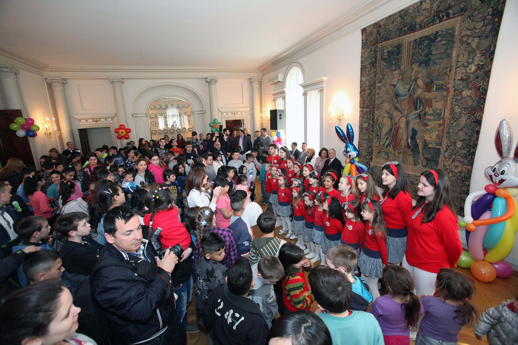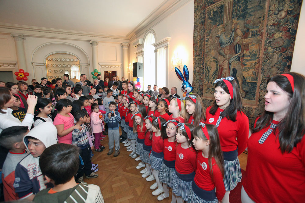 Dečiji hor „Čarolija” i hor Dečijeg kulturnog centra iz Beograda izveli su tradicionalne Vaskršnje pesme. Nakon svečanog prijema i dodele paketića, deca su imala zadovoljstvo da uživaju u vaskršnjoj potrazi za jajima u parku ispred Belog Dvora.